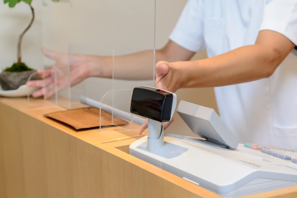 受付にてお名前をお伝えいただき、保険証をご提示ください。